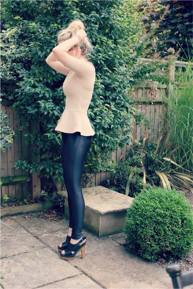 I have a couple of peplum tops now, my all time favourite smart white Zara one, which really is good quality and looks fab on (very smart & chic), second is my grey Topshop peplum, which is very thin and made of tshirt material so makes for a much more casual styling, and now this Lavish Alice one, which is sort of a mixture of the two. I love the cream colour tones, it’s not a colour I often wear but it looks fab with some smart black jeans (or in this case disco pants). The material reminds me of a wet suit, I also have a Zara dress made of the same stuff, and it’s great as it means it has quite a firm structure and smoothes out any areas you want hidden. It’s a perfect length too, not too short so as the peplum pings out in the wrong place, that looks not good for anyone :)
