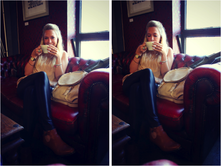 So anyway, these photos were taken Sunday when we popped to the paintworks for a nice cuppa coffeeeee, mine: Hazelnut Americano. Followed by an accidental shopping spree (when I naughtily purchased my expensive jersey tee).