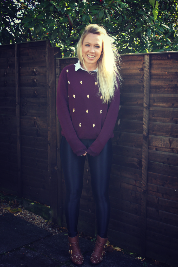 This Lavish Alice jumper is not only a new AW fave of mine, but it also fits perfectly into this Halloween time of year. The burgundy sweater has tons of little gold skulls sewn onto it, giving the jumper a bit of a spooky twist.I’m a big fan of burgundy at the best of times, but the detailing on this jumper definitely takes it to another level. It’s suitably on trend with all the studs / gold embellishment that is taking over our high street at the moment too.