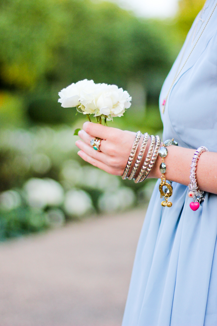 I added lots of pretty jewels to the outfit including my Shabana Khan Doreen bracelet which just went absolutely perfectly with the dress. The seafoam green colouring of the bracelet was made to go with the Allondra dress. I also added my heart detailed Vivienne Kelly necklace which I think has a very elegant but bohemian style to it. I didn’t want to add anything too chunky to the dress, and so this necklace was the perfect choice.
