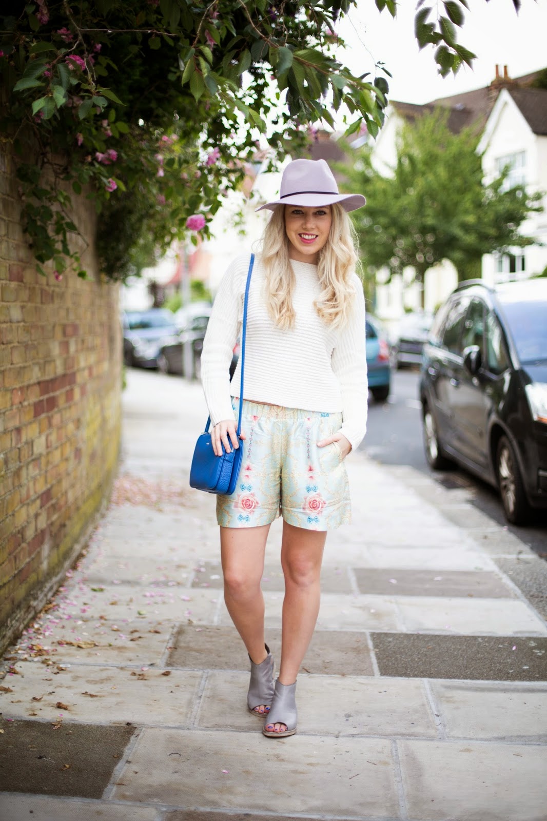 those monki shorts are so pretty !! I love your vivid cobalt blue bag too – perfect