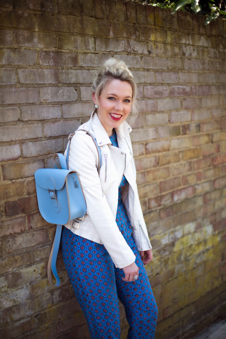 I love the jumpsuit and the white leather together! This bag is so so cute, I’m in desperate need of a backpack for my holiday!