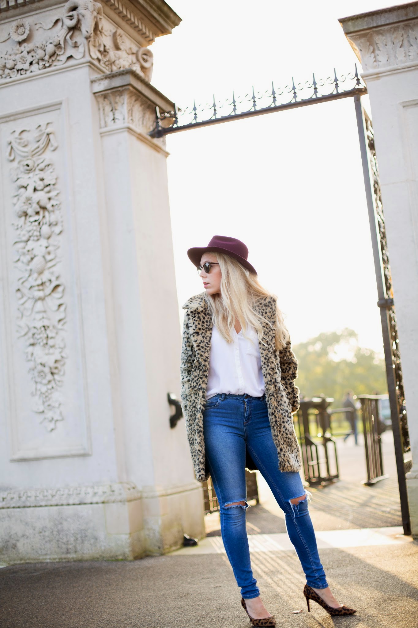 This coat is a new number from Missguided, I know I know, I don’t need any more coats, but come on, who could blame me it’s a) fur, b) leopard print. it’s like double whammy and all my resistance went out the window. When I was thinking about wearing the coat this weekend I went through a little ‘what shall I wear this with’ moment, innately opting for something dressy, I wanted my challenge myself to style it for a slightly more every day look. And voila, with a little pinterest inspiration to get my juices flowing I settled on a simple denim jean & white shirt combination which let the coat (and the LK shoes) do all the talking! Subtle, but statement none the less don’t you think?