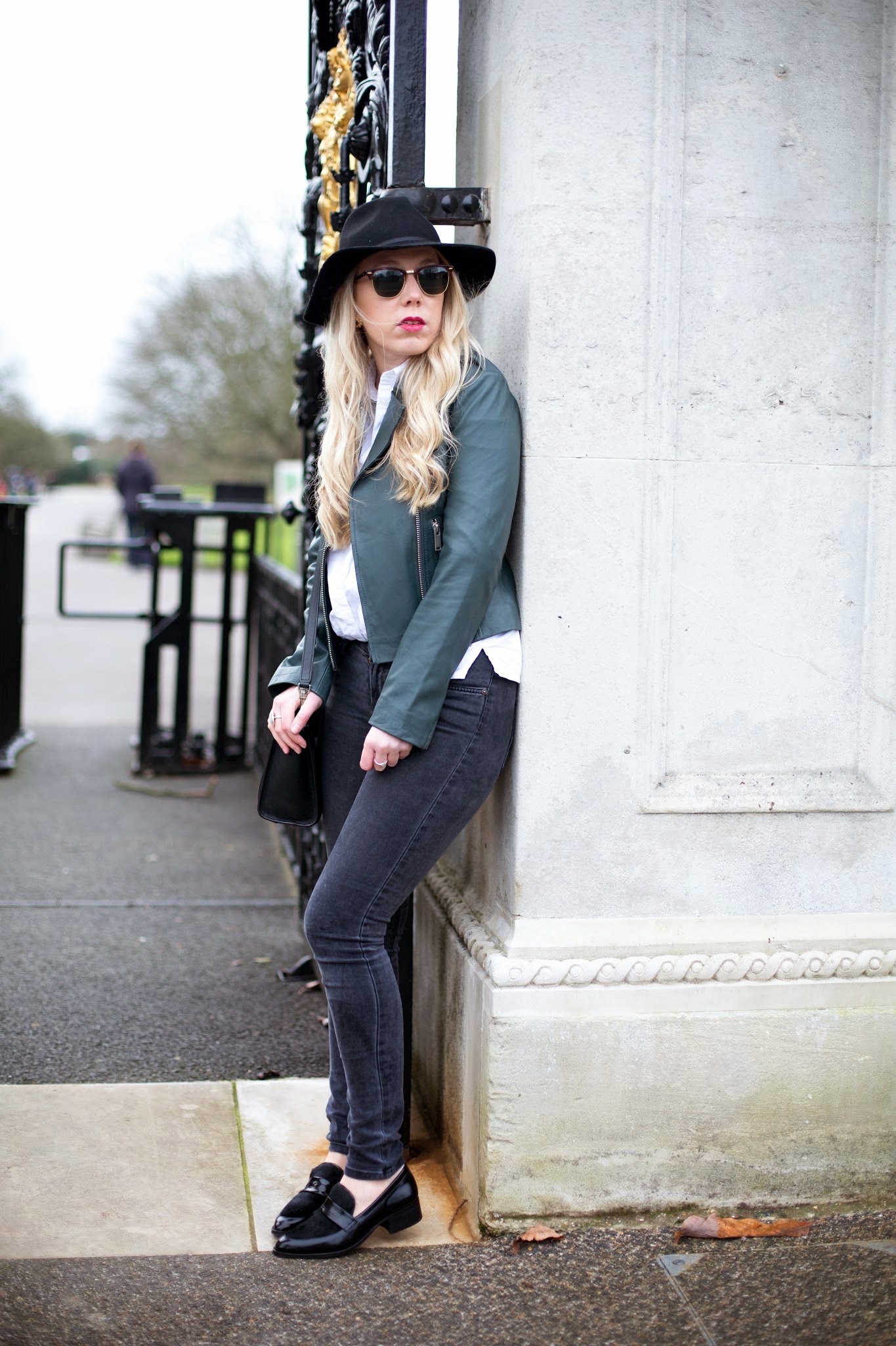 But in true leather jacket style, this weekend I sported my jacket in a far more basic way, teamed with a simple slate skinny jean (these James Jeans are one of my favourite pairs of jeans, a super comfy fit), my Whistles loafers (still wearing these ones in, ahem) & a basic white shirt. The ensemble is low key but the perfect day time look and even something you could wear to work too!